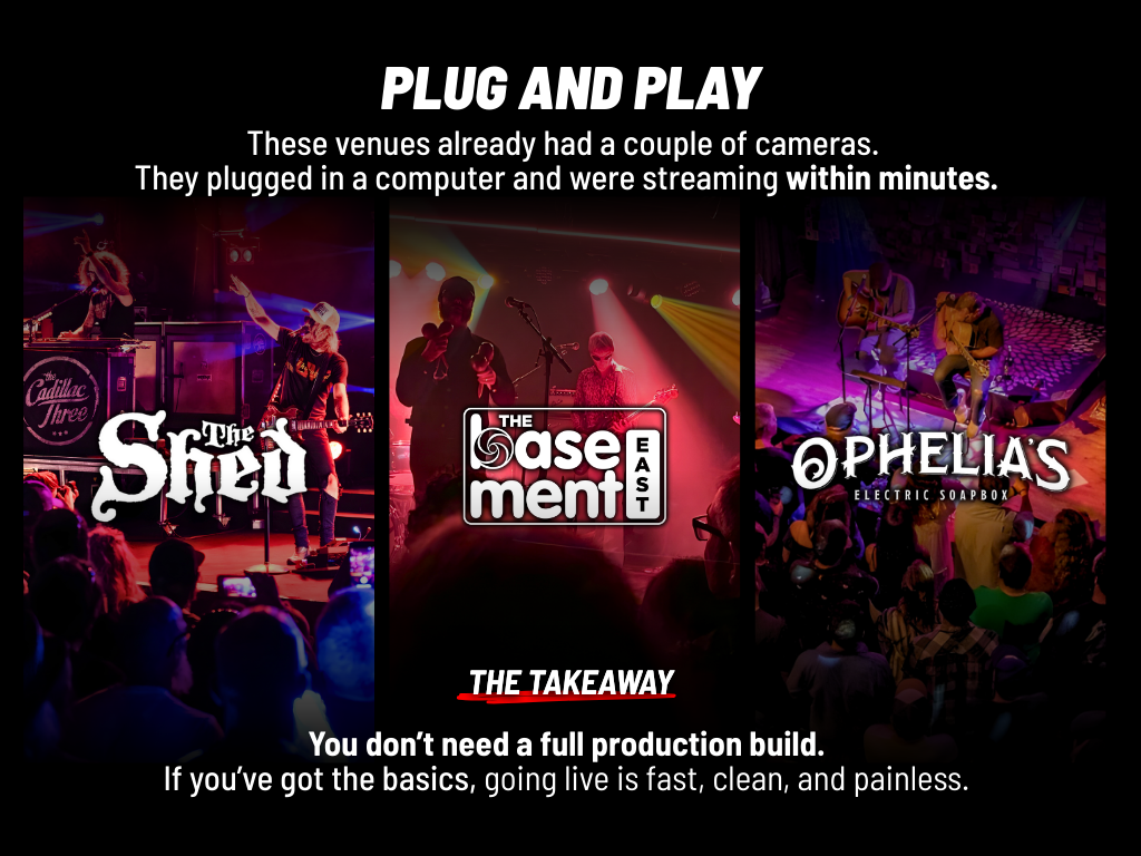 That’s why venues like The Shed can livestream consistently instead of treating it like a one-off experiment.